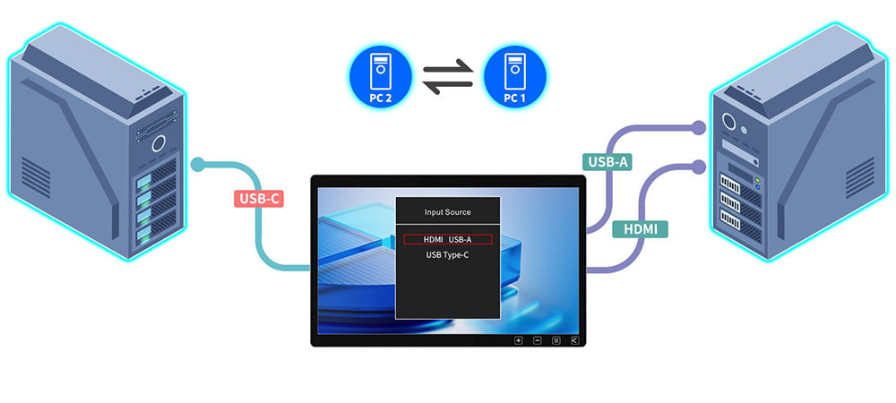 With the synchronous switch function of video and touch input, a single T315 touchscreen monitor can connect to two computers simultaneously. Use the OSD menu to instantly switch both display and touch inputs, facilitating efficient dual-platform management. This streamlined configuration simplifies your setup—saving both time and long-term and maintenance costs!